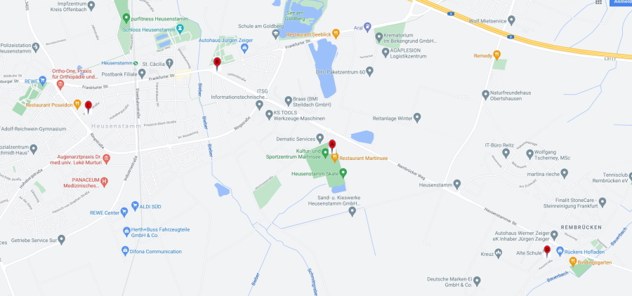 Das Training aller Gruppen des TanzsportZentrums Heusenstamm verteilt sich auf verschiedene Räumlichkeiten in Heusenstamm.